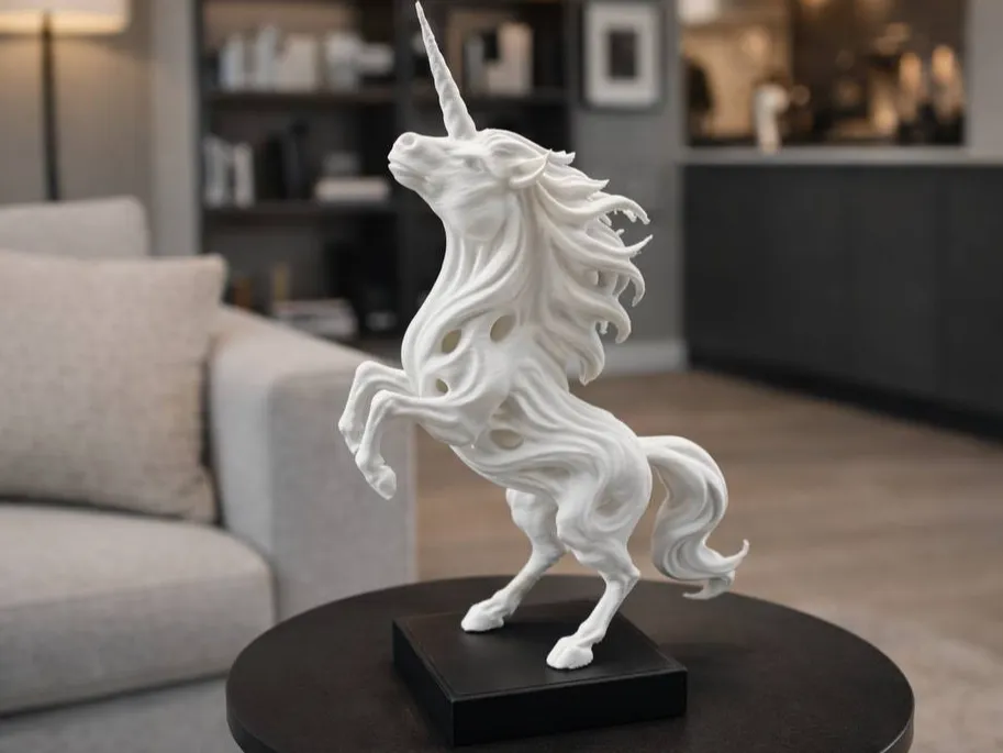 Die MythicaCreatura Unicorn Skulptur vereint Eleganz, Fantasie und modernes Design in einem außergewöhnlichen Kunstobjekt. Die detailreiche Darstellung eines aufsteigenden Einhorns mit fließender Mähne und organischen Strukturen verleiht der Figur eine mystische und zugleich moderne Ausstrahlung.